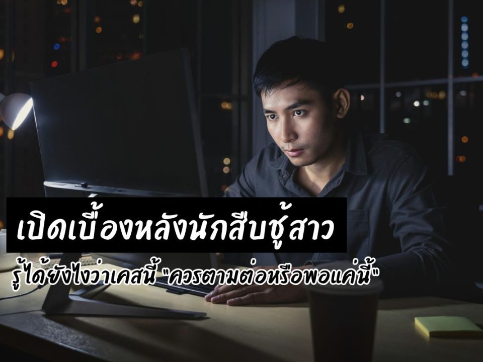 28 เมษายน 2026เปิดเบื้องหลังนักสืบชู้สาว รู้ได้ยังไงว่าเคสนี้ “ควรตามต่อหรือพอแค่นี้”เปิดเบื้องหลังนักสืบเอกชน! เจาะลึกวิธีประเมินสถานการณ์ว่าเคสไหน “ควรตามต่อ” หรือ “พอแค่นี้” พร้อมเผยเทคนิคเก็บหลักฐานฟ้องชู้แบบหมัดเด็ดที่ดิ้นไม่หลุด
